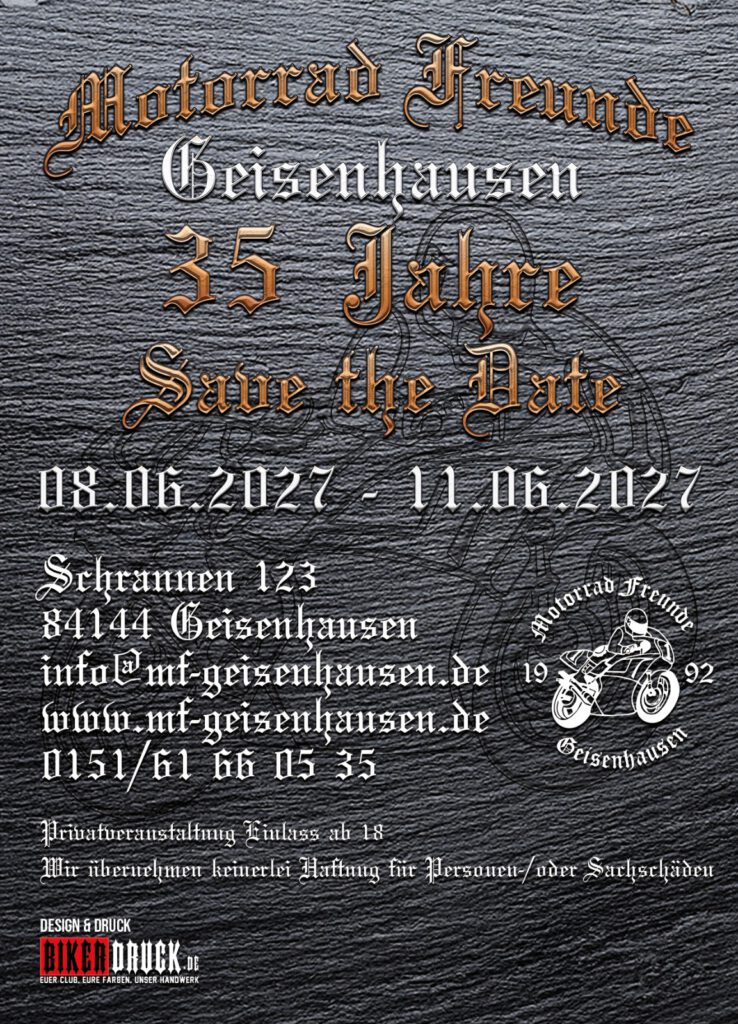 Die Motorradfreunde Geisenhausen, treiben sich gerne auf Motorrad- oder Elefantentreffen rum, aber auch auf Motorcross-, Speedway- und Mofa Rennen kann man uns finden.